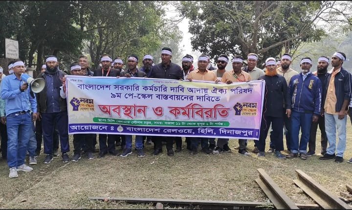 ৯ম পে-স্কেলের দাবিতে হিলি রেলস্টেশনে রেল কর্মচারীদের দুই ঘণ্টার কর্মবিরতি
