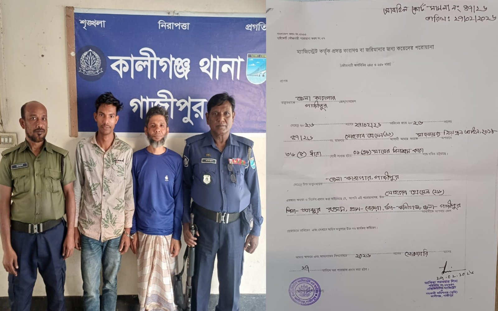 কালীগঞ্জে মাদকরিরোধী অভিযানে দুই মাদকসেবীকে কারাদন্ড